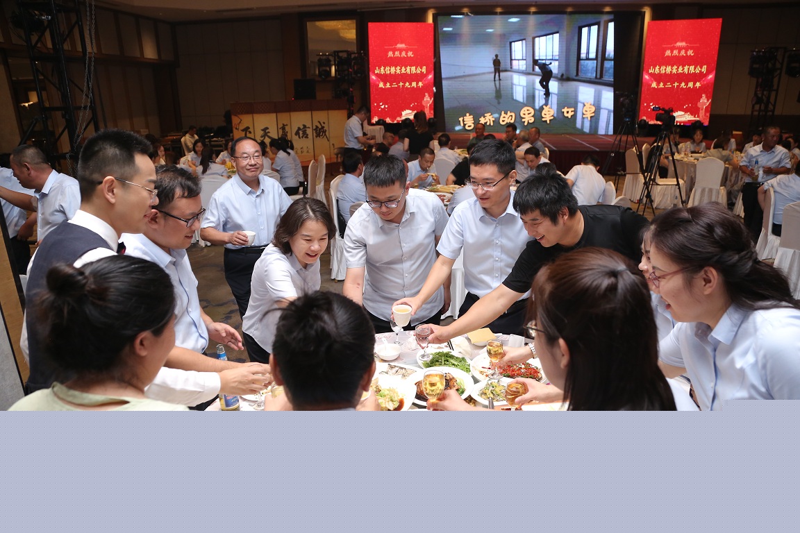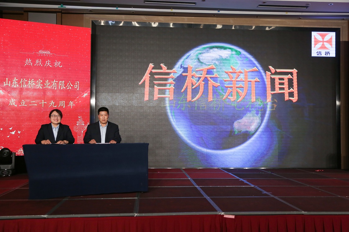 歲月如歌,風(fēng)霜如畫,二十九年彈指一揮間,山東信橋?qū)崢I(yè)有限公司(以下簡稱山東信橋)迎來了二十九周歲的生日。二十九年來,信橋人在激烈的市場競爭中奮力拼搏、砥礪前行,接受了市場風(fēng)風(fēng)雨雨的洗禮,取得了累累碩果。為了慶祝這一特殊的日子,2023年8月8日,以“激流勇進(jìn),安定團(tuán)結(jié)謀發(fā)展 披荊斬棘,開拓創(chuàng)新向未來”為主題的山東信橋二十九周年慶典活動(dòng)在寶盛大酒店舉行。